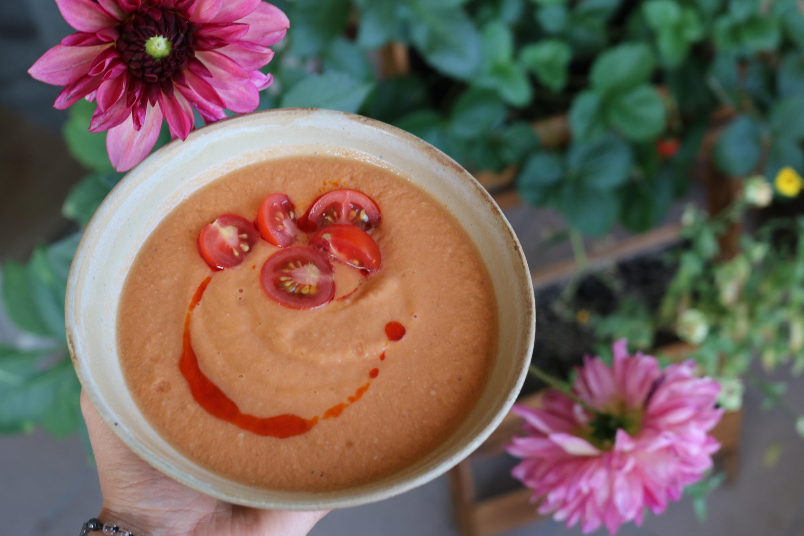 Ani to gazpacho, ani salmorejo. Moja, bardziej polska wersja hiszpańskich chłodników. Wyszły około 3 przepyszne porcje! Czego potrzebuję? 4 średniej wielkości pomidory